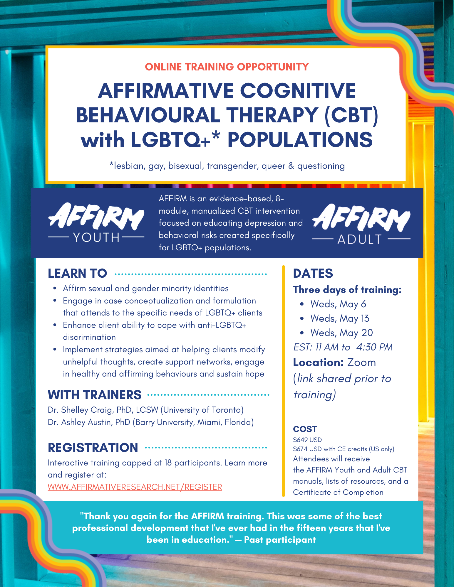 Would you like to host an AFFIRM training for your organization? Please contact us at mail@affirmativeresearch.net for pricing and scheduling.